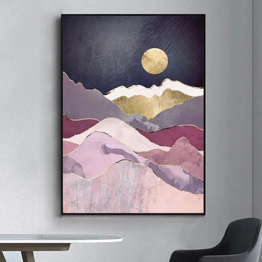 Abstract Scenery Poster | Full Moon Over Desert Landscape | Artistic Desert Night Sky Poster | Wall Art for Home Decor