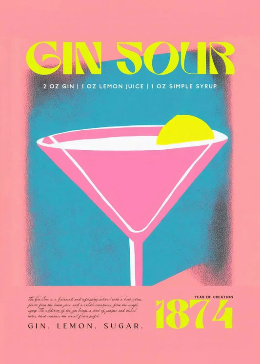 Vintage Gin Sour 1874 Poster | Cocktail Party Wall Art | Home Decor | Retro Bar Print | Vintage Drink Illustration | Artwork for Kitchen or Bar