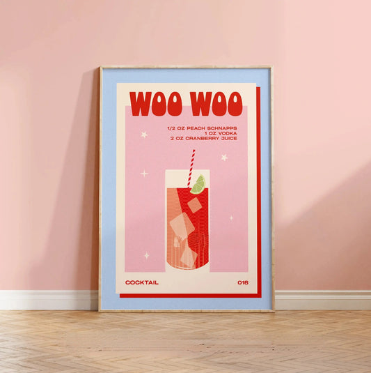 Vintage Cocktail Art Poster | Woo Woo Design | Home Bar Decoration | Retro Wall Art | Unique Gift Idea | Kitchen Decor | 24x36 Inches