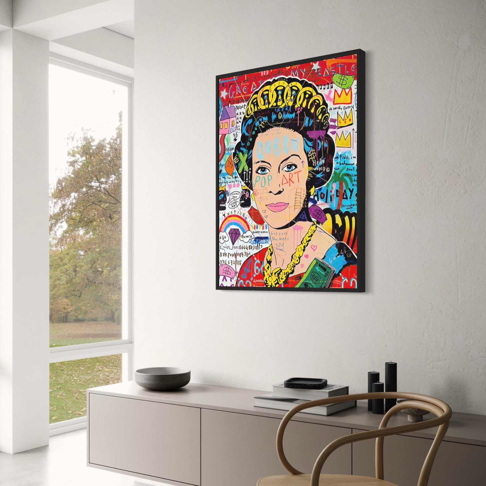Abstract Pop Graffiti Art Poster | Queen of England Portrait | Canvas Wall Art for Living Room Decor