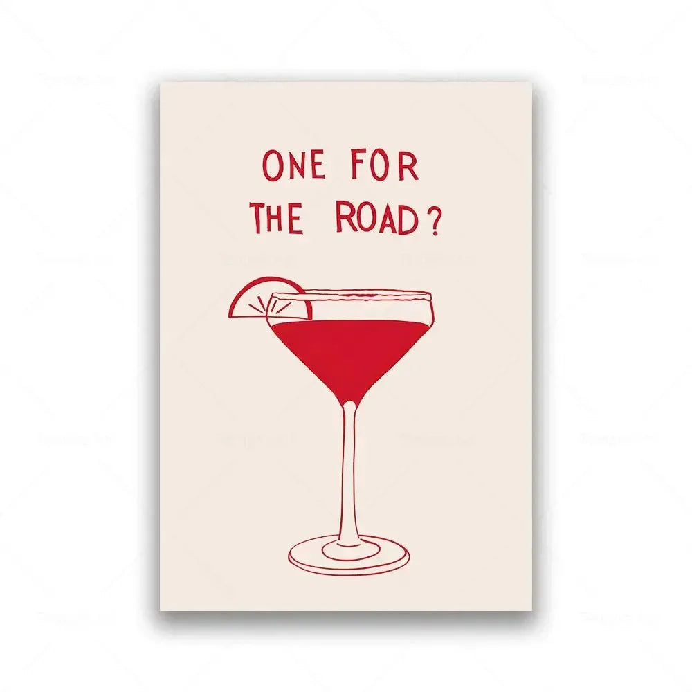 Hand Drawn Minimalist Poster | One For The Road | Modern Home Decor | Artistic Visual Print | Wall Art