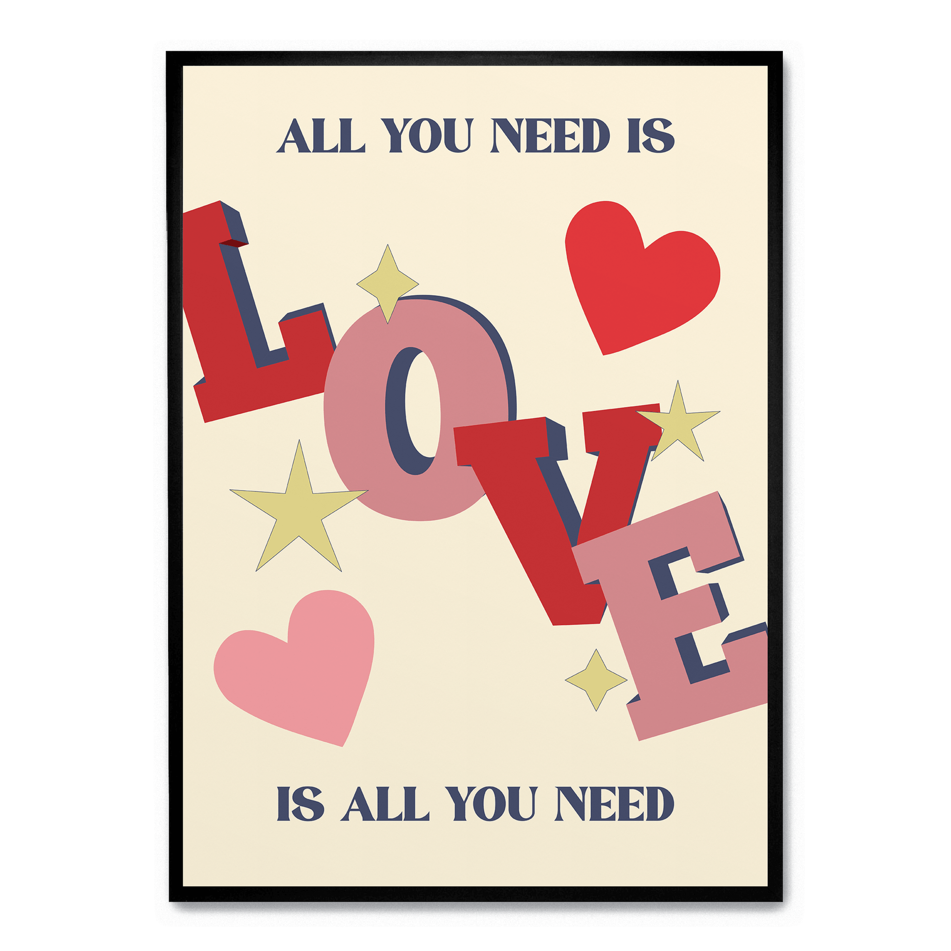 All You Need Is Love | Artistic Wall Decor Poster | Inspirational Quote Art for Home Decor | Motivational Word Art | Unframed Print | Perfect for Living Room, Bedroom, Office