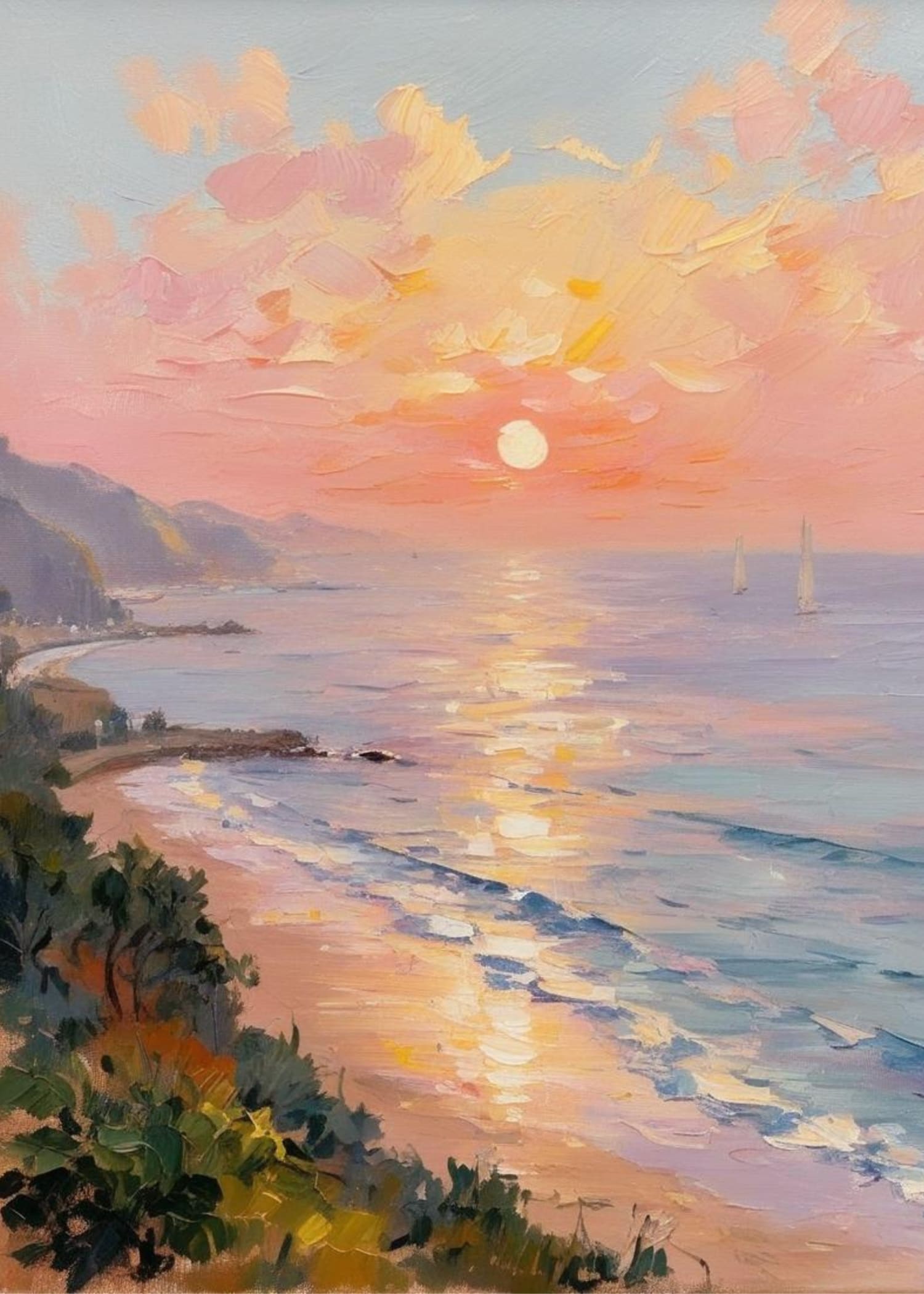 Calming Coastline Poster | Serene Beach Scene | Ocean Waves Art | Tranquil Seashore Print | Wall Decor | Coastal Vibes | Relaxing Landscape Artwork
