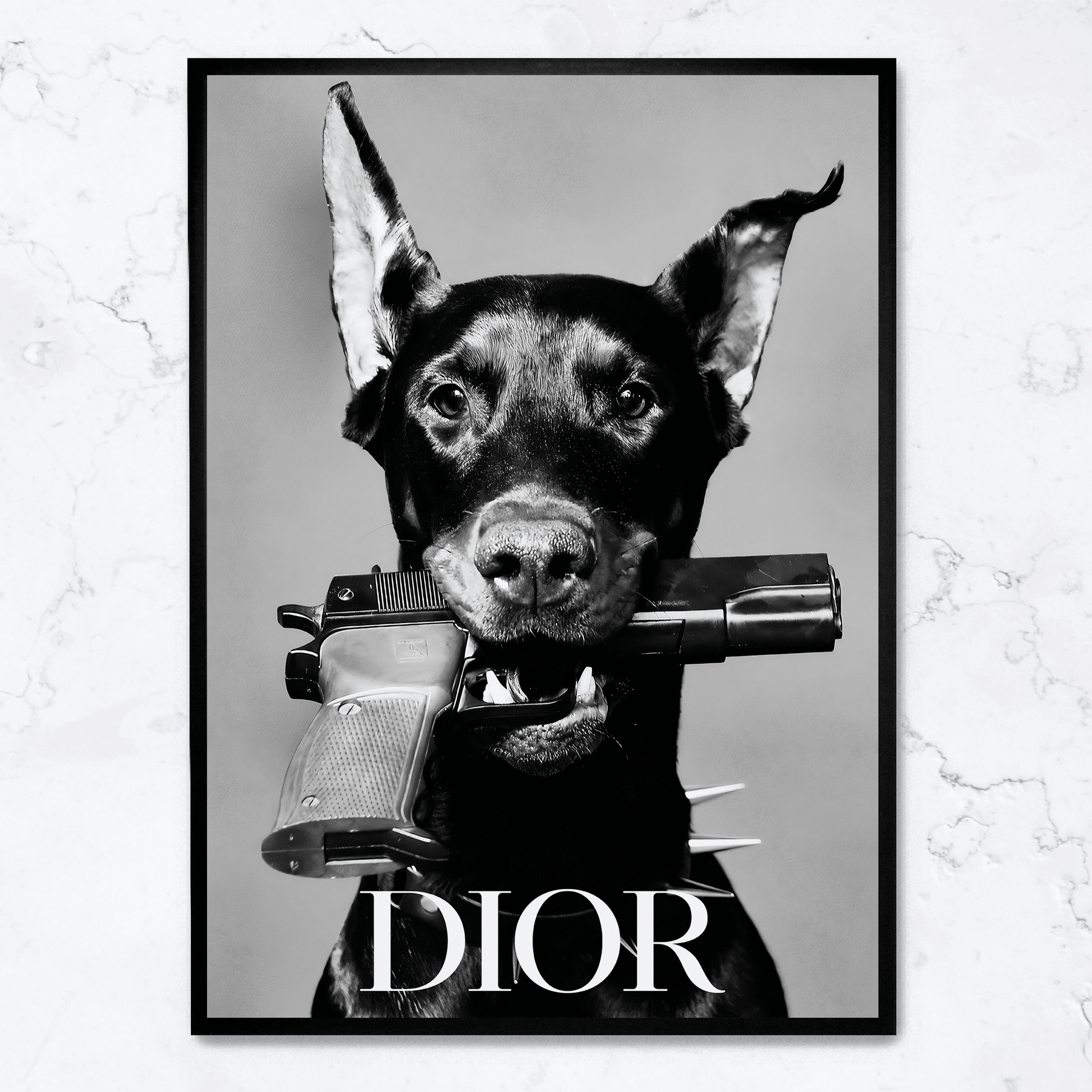 Dior Dog Poster | Elegant Home Decor Artwork | Stylish Visual Art Print | Perfect for Living Room or Office | High-Quality Design
