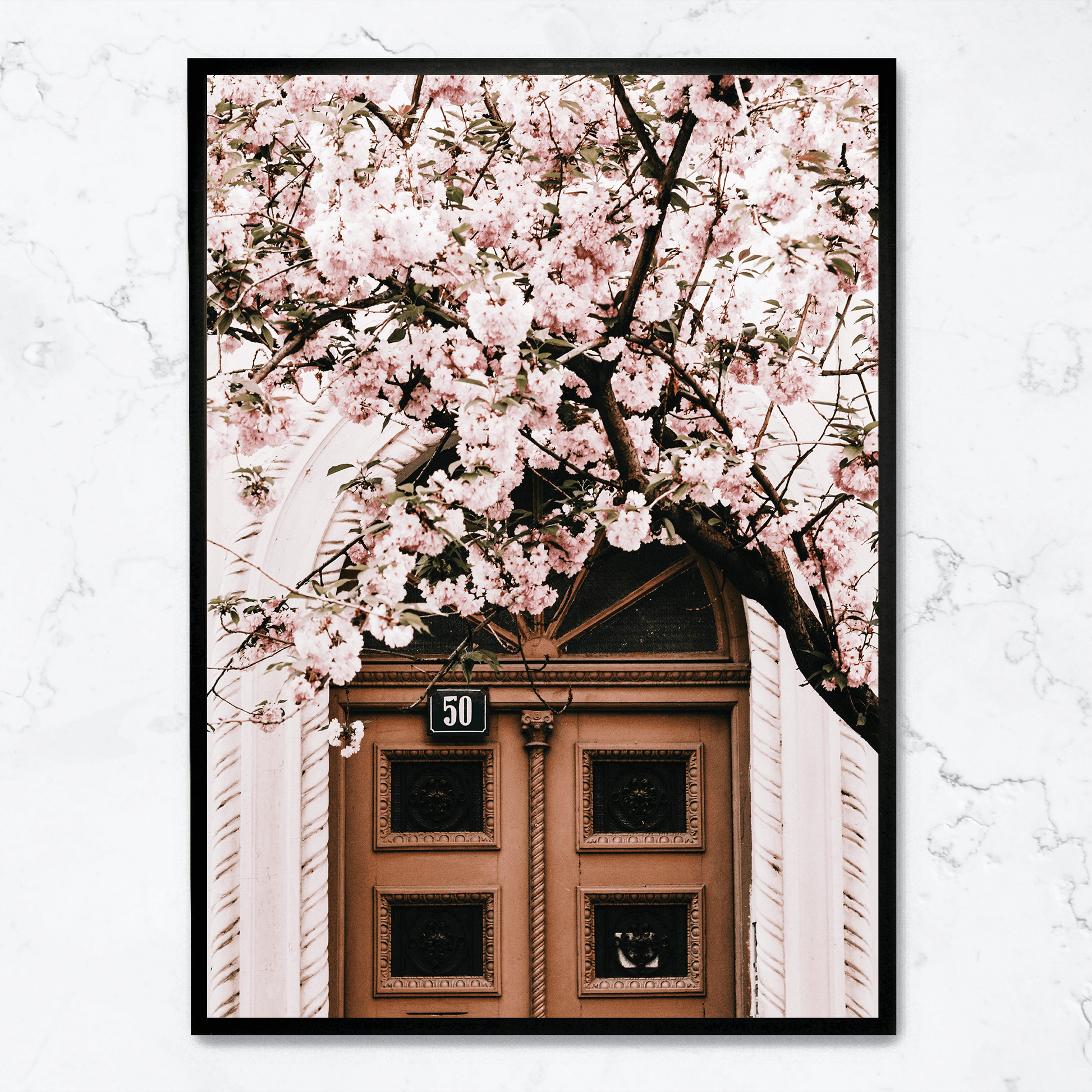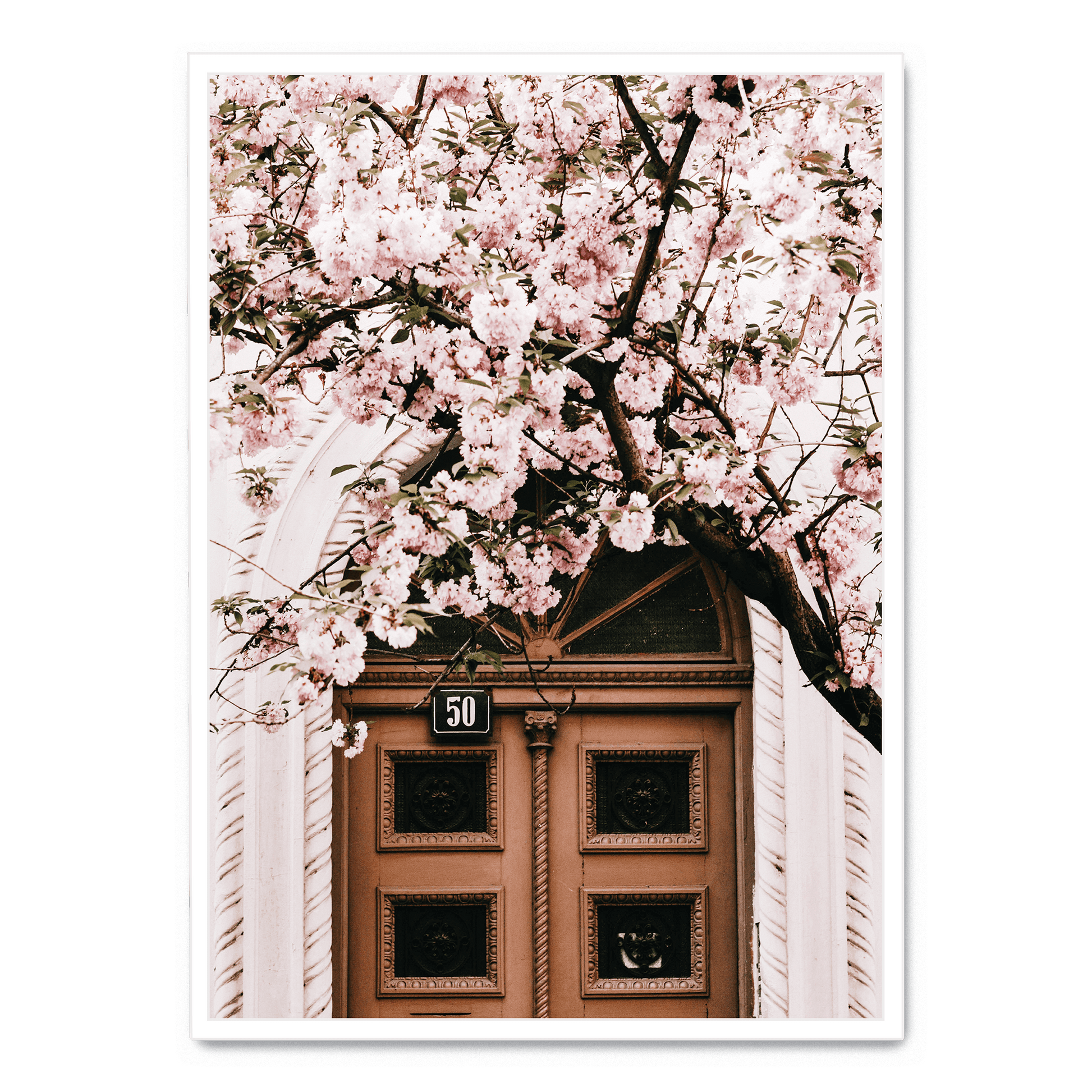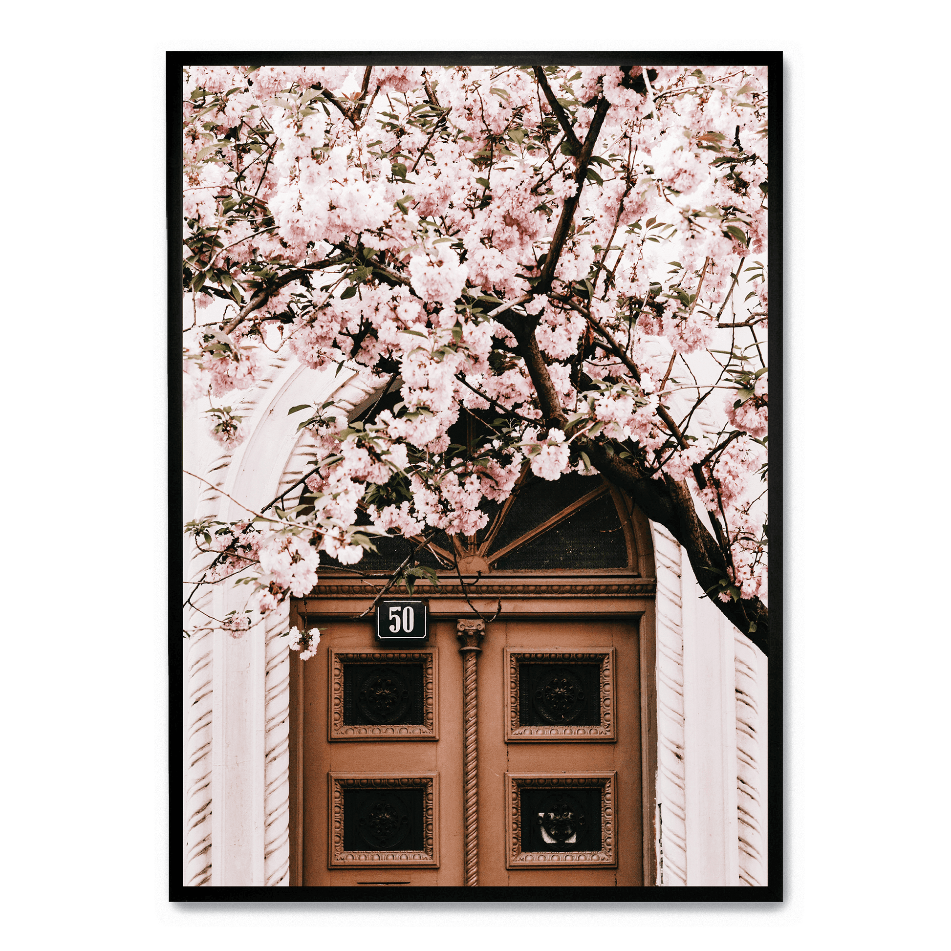 Poster | Door with Pink Flowers | Artistic Decor for Home & Garden | Floral Print Wall Art