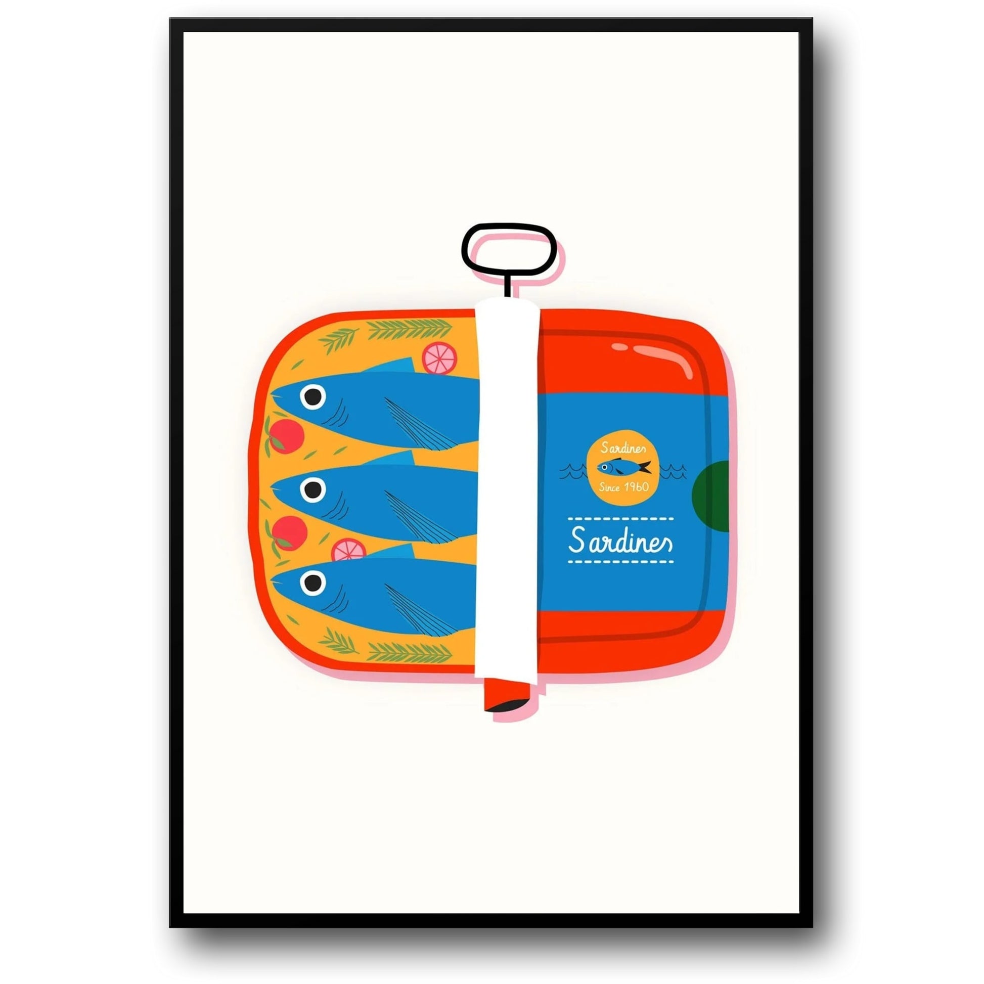 Sardines Poster | Vintage 1960 Culinary Illustration | Home Decor Wall Art | Kitchen Print