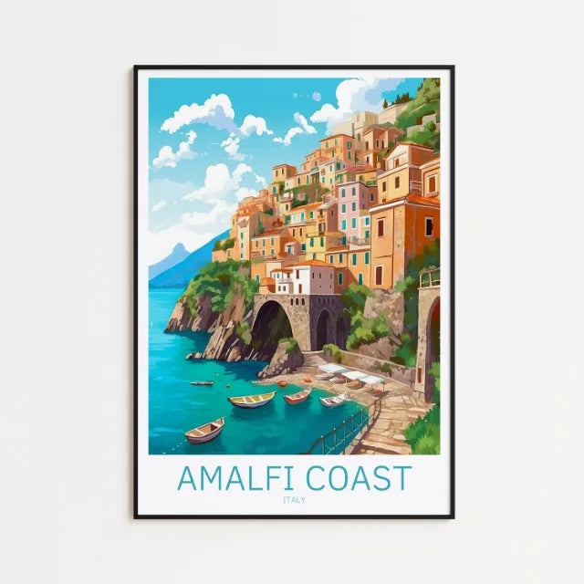 Iconic Destinations Poster | Beauty of Amalfi Coast | Italy Travel Art | Scenic Coastal Print | Wall Decor | Artwork for Home & Garden | Visual Art for Living Room | Landscape Photography Poster