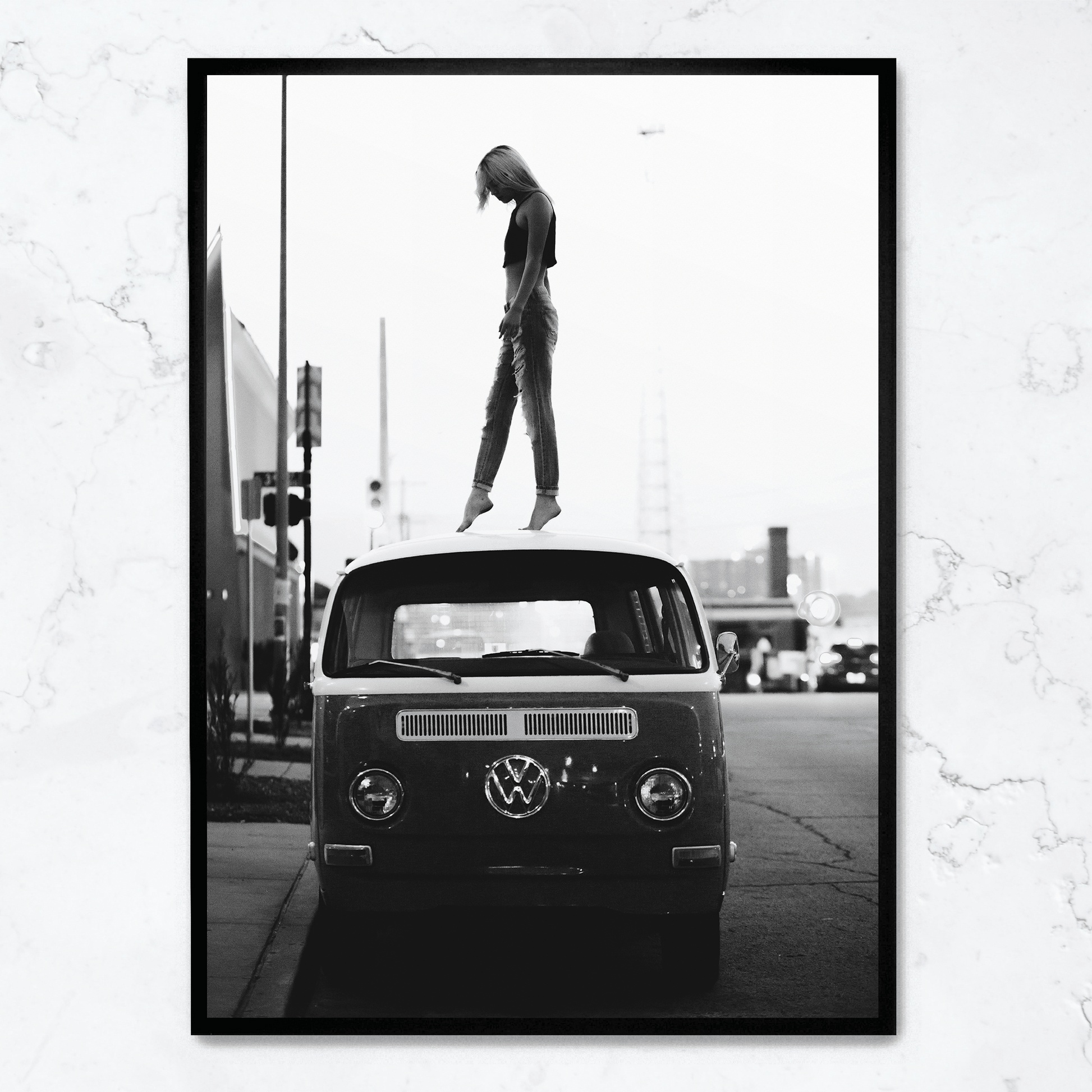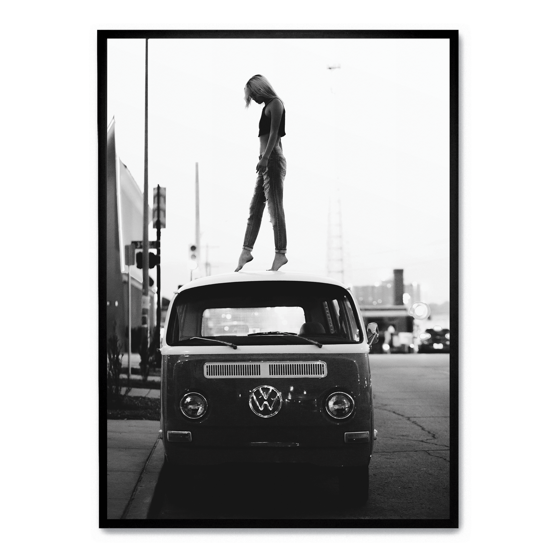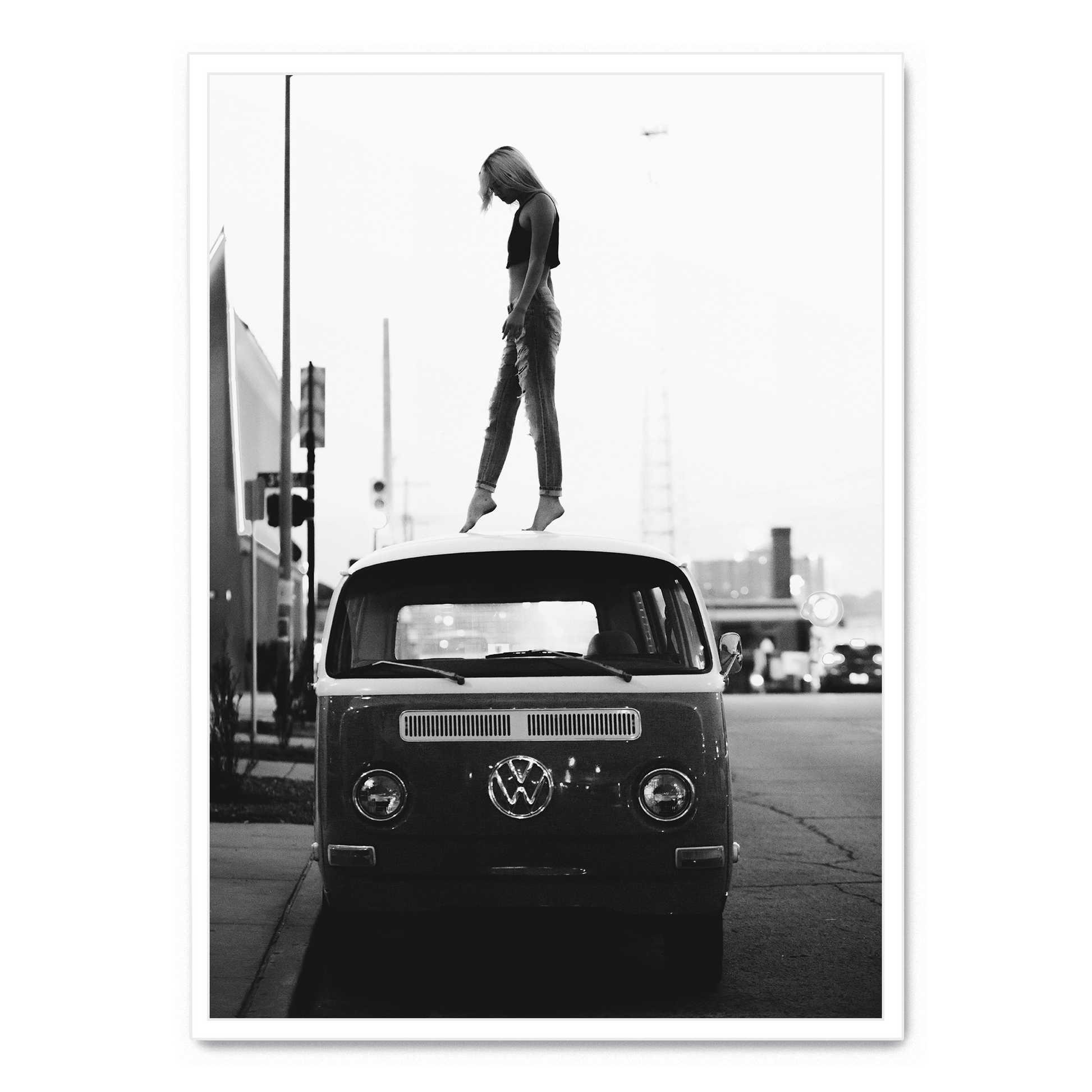 Vintage Style | Girl on Volkswagen | Retro Art | Poster | Wall Decor | Home & Garden | Unique Design | Artwork