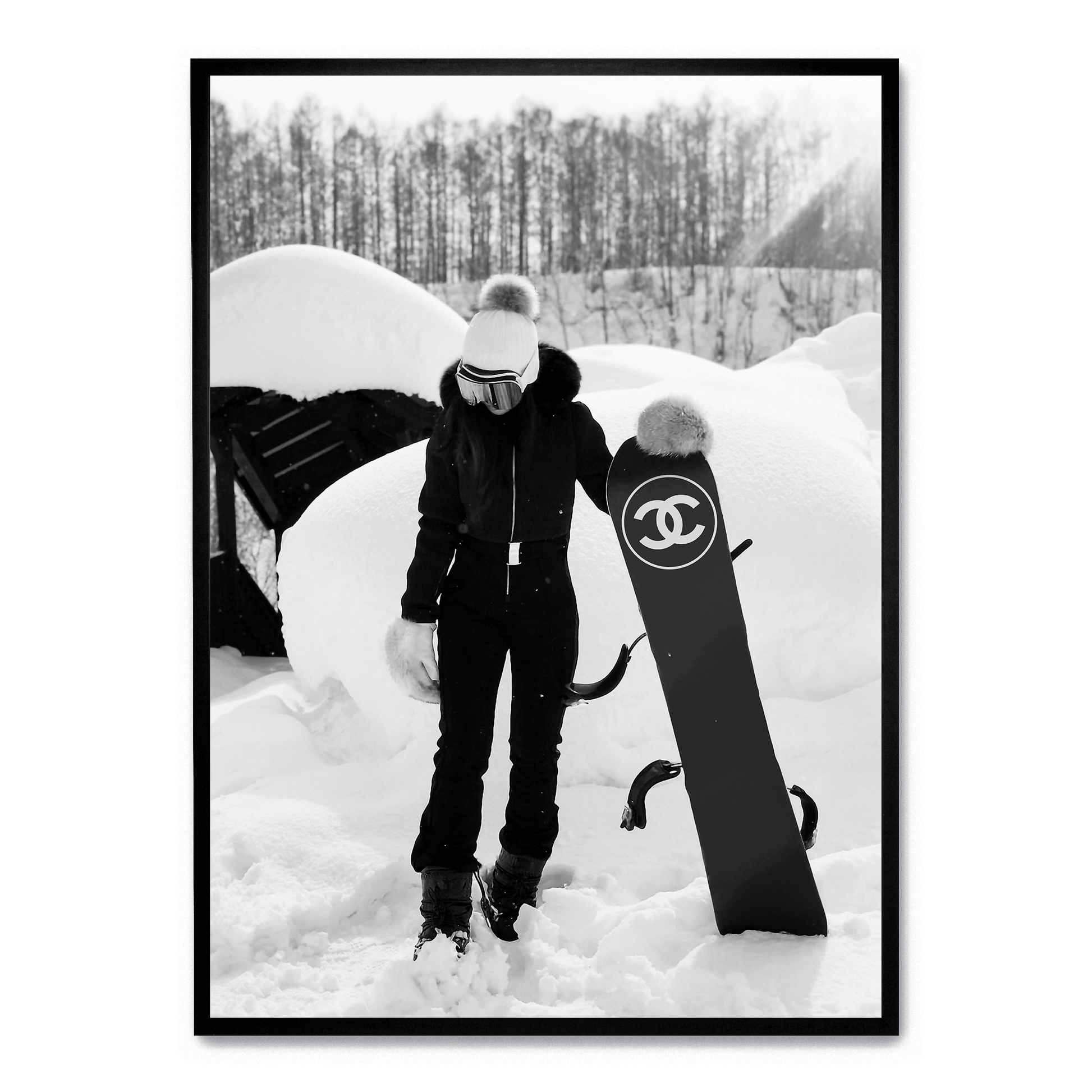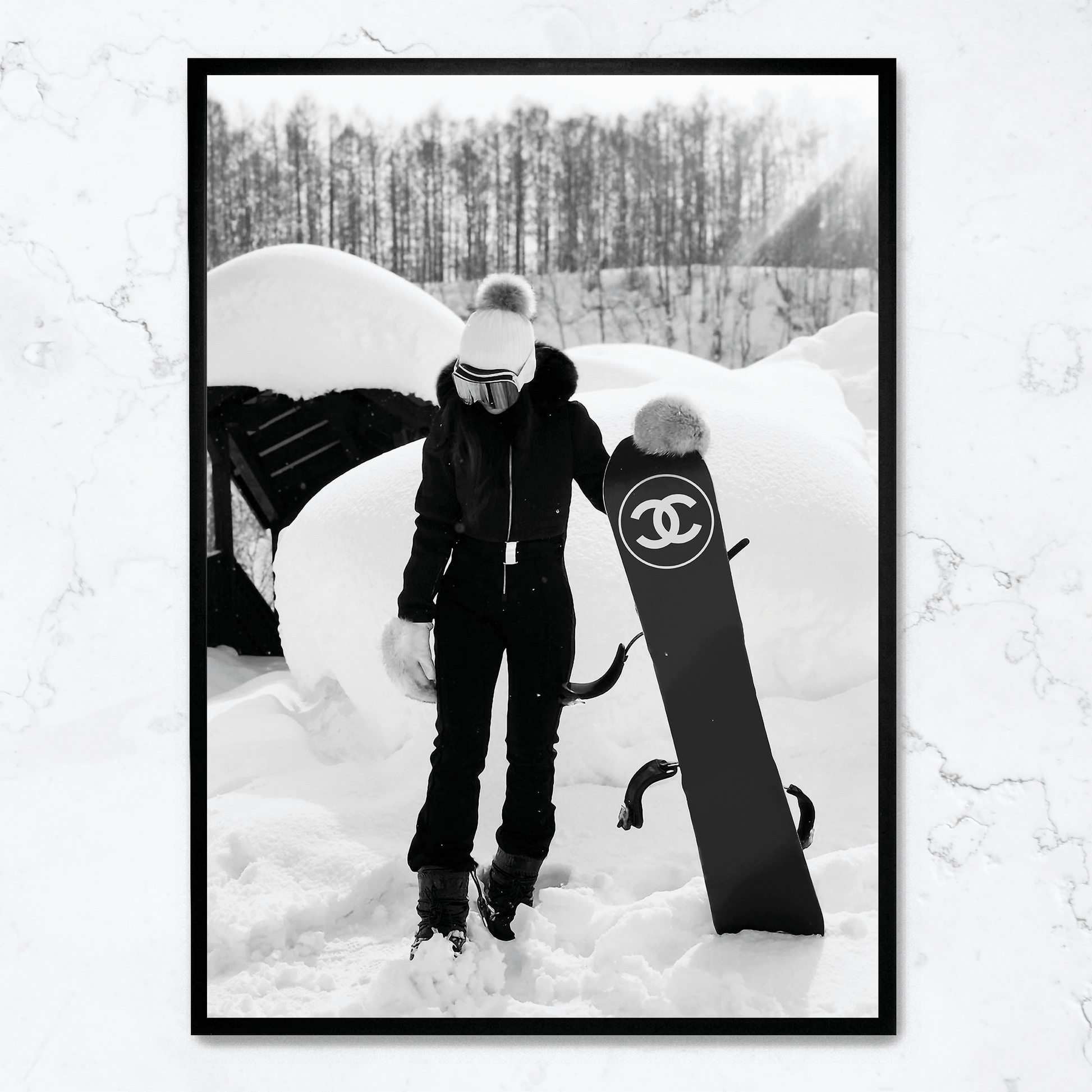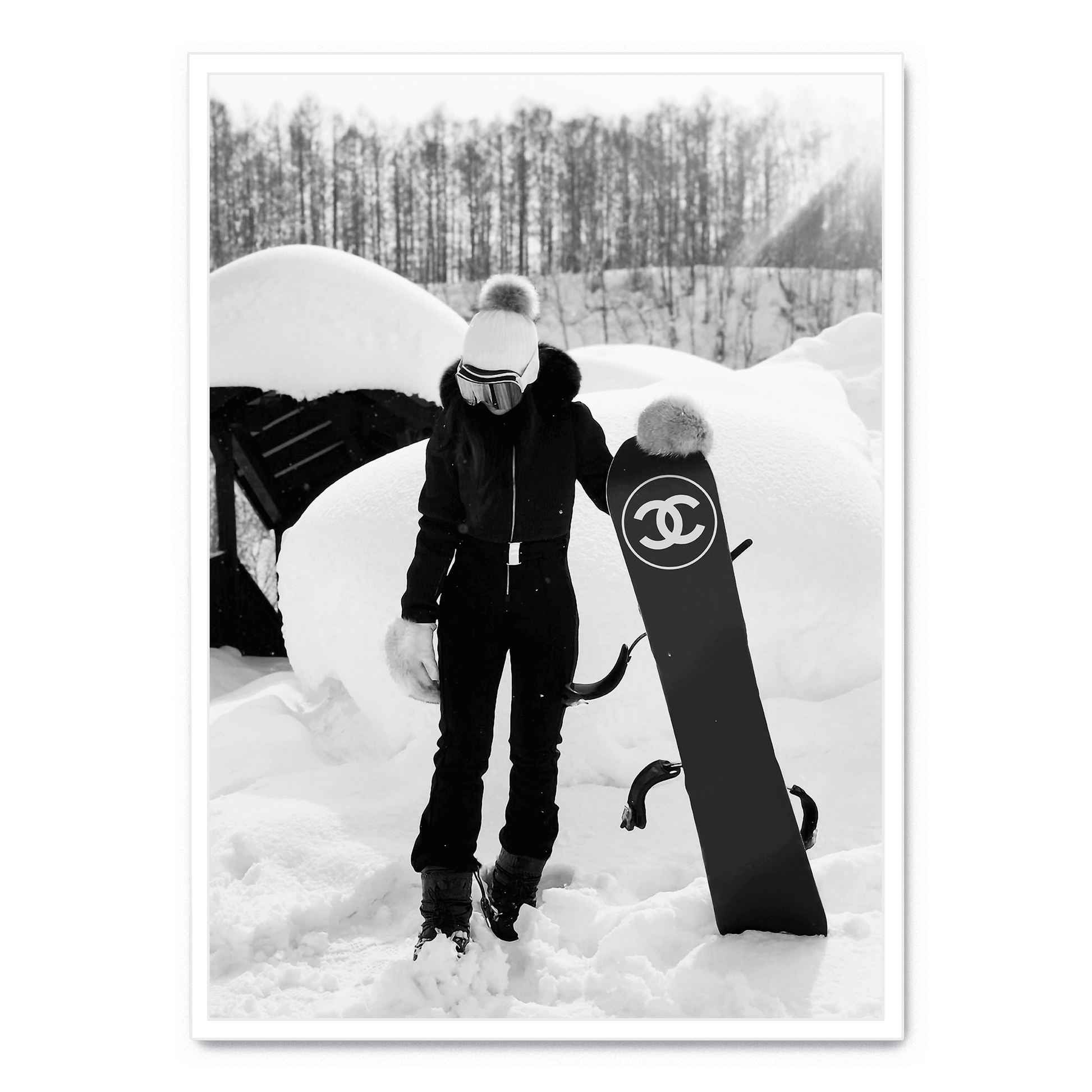 Chanel Snowboard Enthusiast Poster | Fashionable Girl Illustration | Winter Sports Decor | Wall Art for Modern Interiors | Luxury Brand Poster