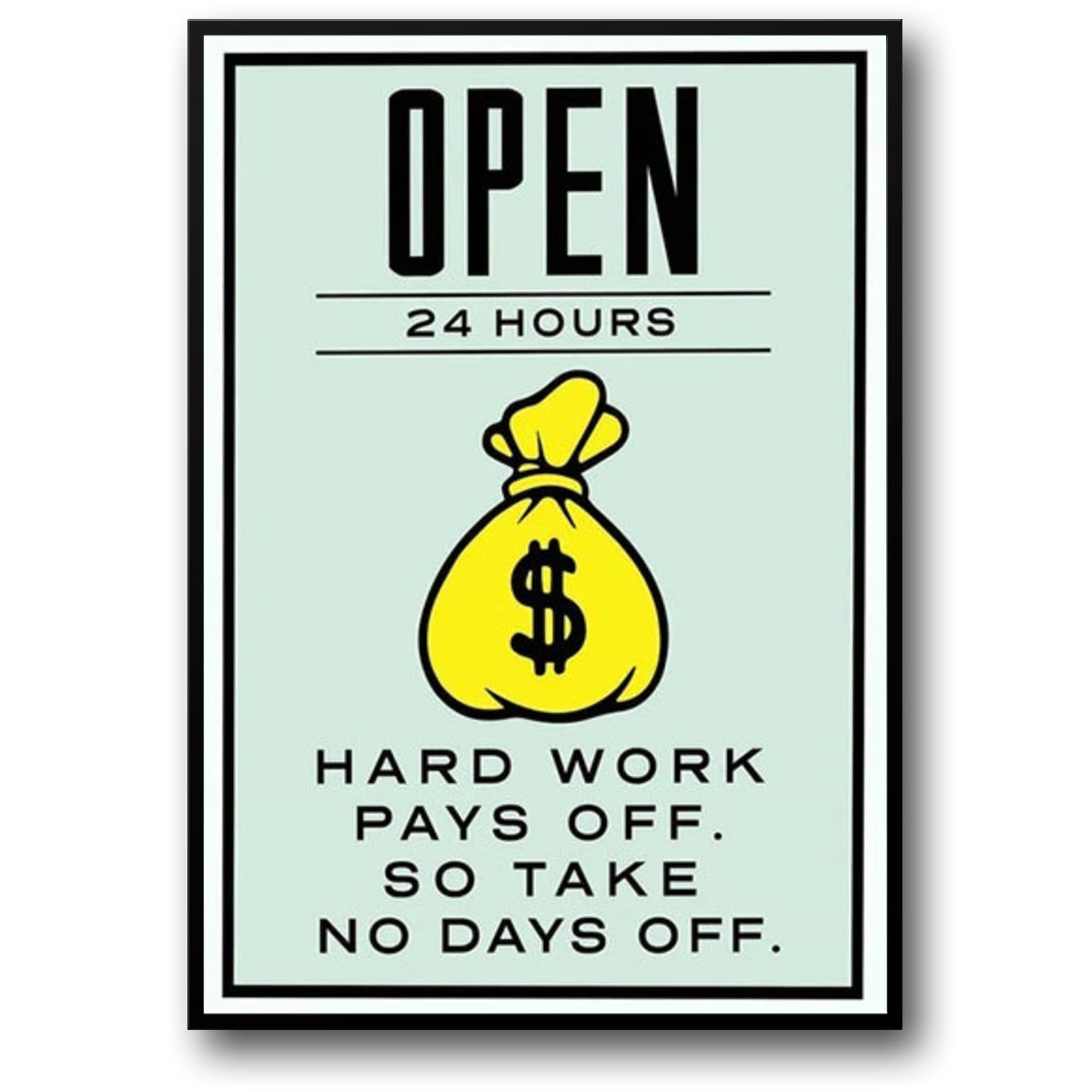 Monopoly Open 24 Hours Poster | Classic Board Game Art | Vintage Style Wall Decor | Unique Artwork for Game Rooms | Perfect Gift for Gamers | Collector's Edition Reproduction