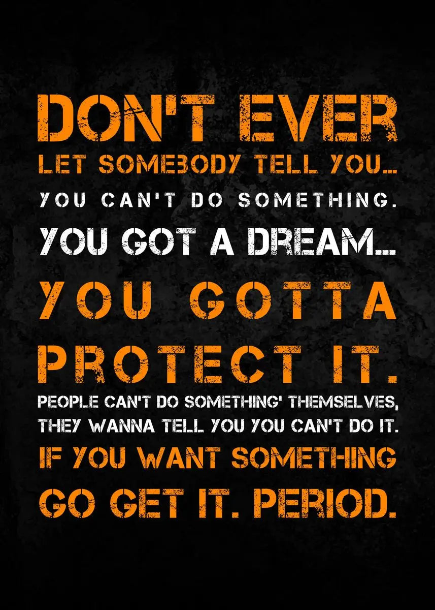 Bodybuilding | Weightlifting | Motivational Quote | Gym Fitness Poster | Don't Ever Let Somebody Tell You... You Can't Do Something. You Got A Dream... You Gotta Protect It.
