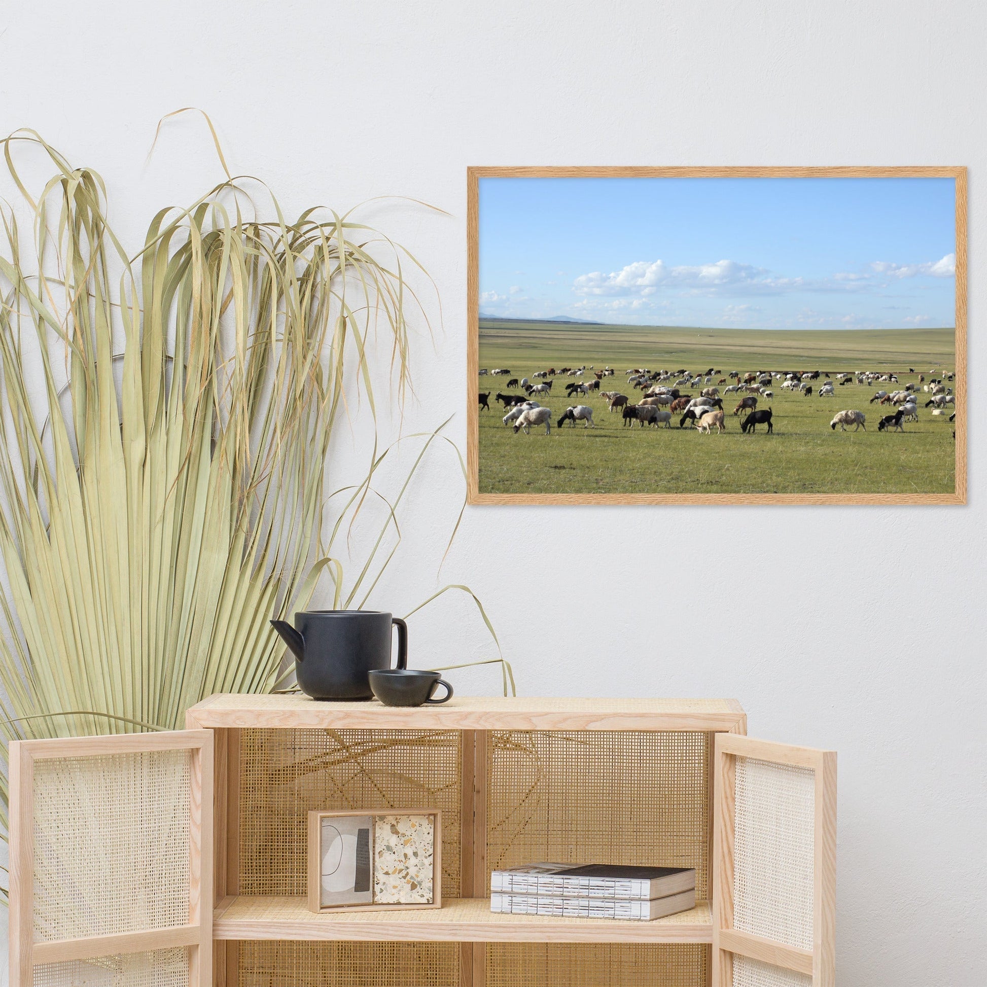 Poster - Herd of sheep graze in Mongolian steppe