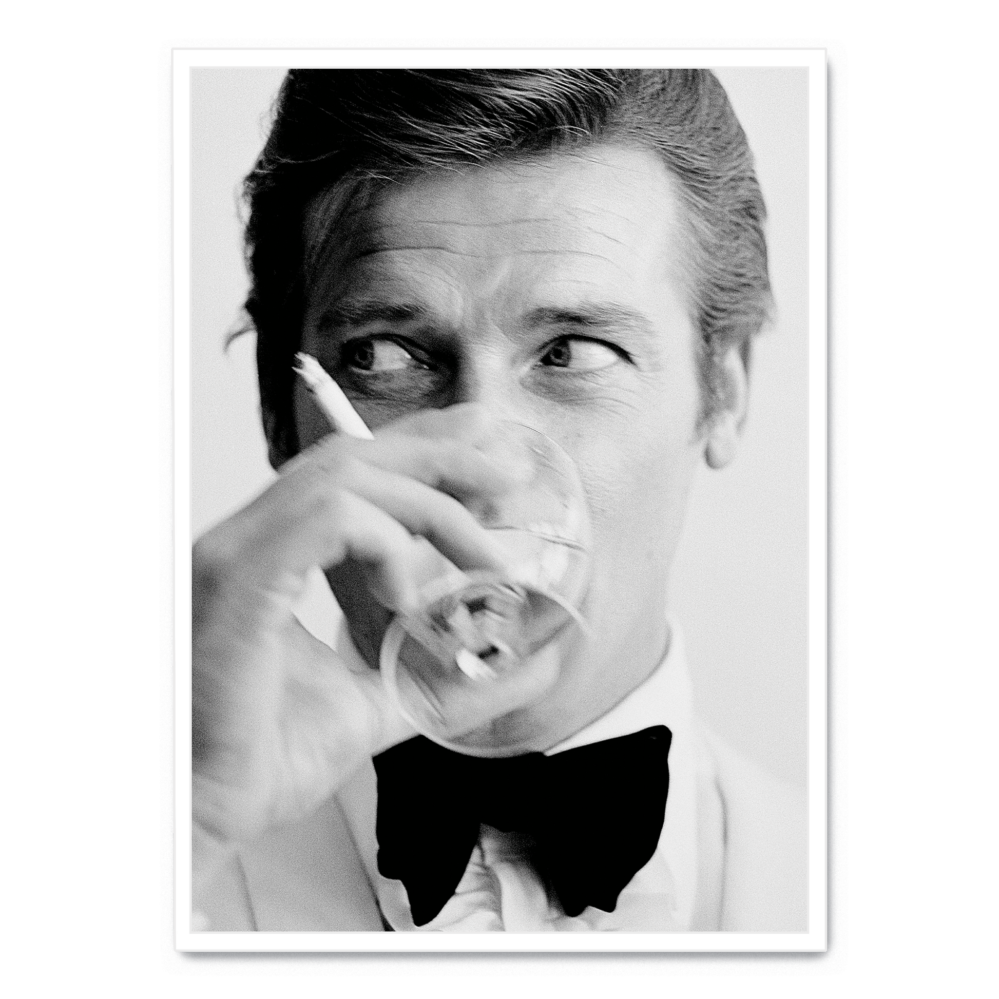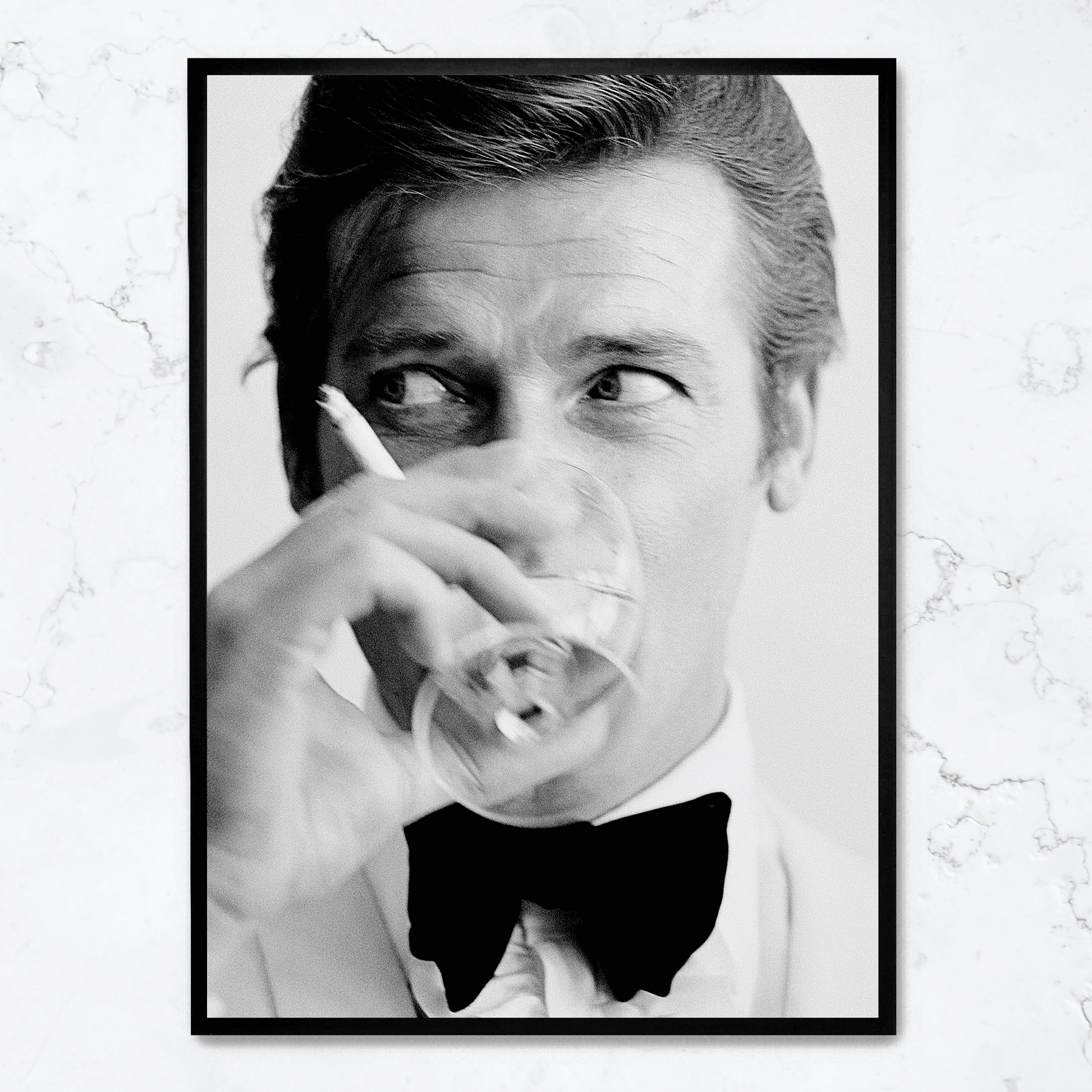 Roger Moore | Classic Black and White Still | Iconic James Bond Era | Movie Wall Art Poster