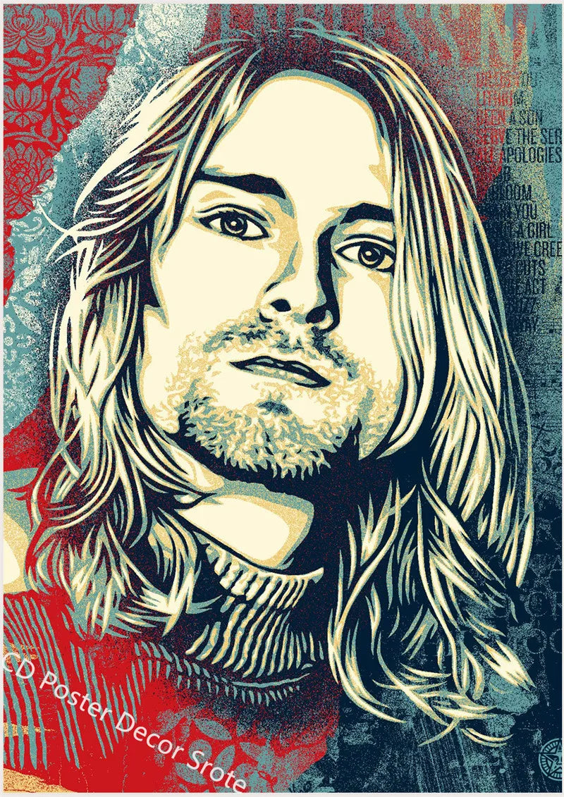 Kurt Cobain Poster | Rock and Roll Music Art | DIY Decor for Cafe Bar Room | Aesthetic Home Wall Painting