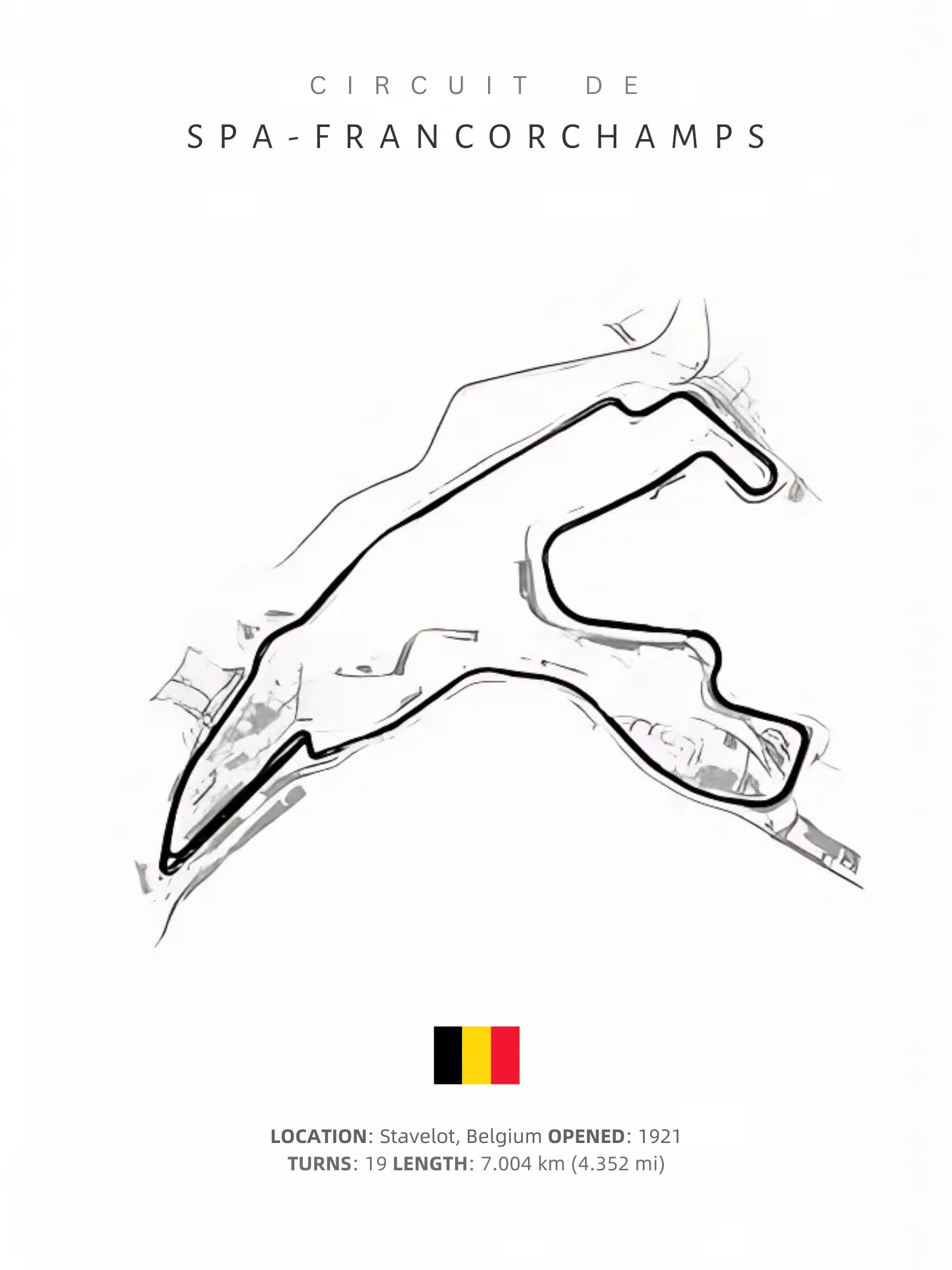 F1 Circuit Track Layout Poster | Spa-Francorchamps | Formula 1 Racing Decor | Motorsport Wall Art | Home & Garden Decor