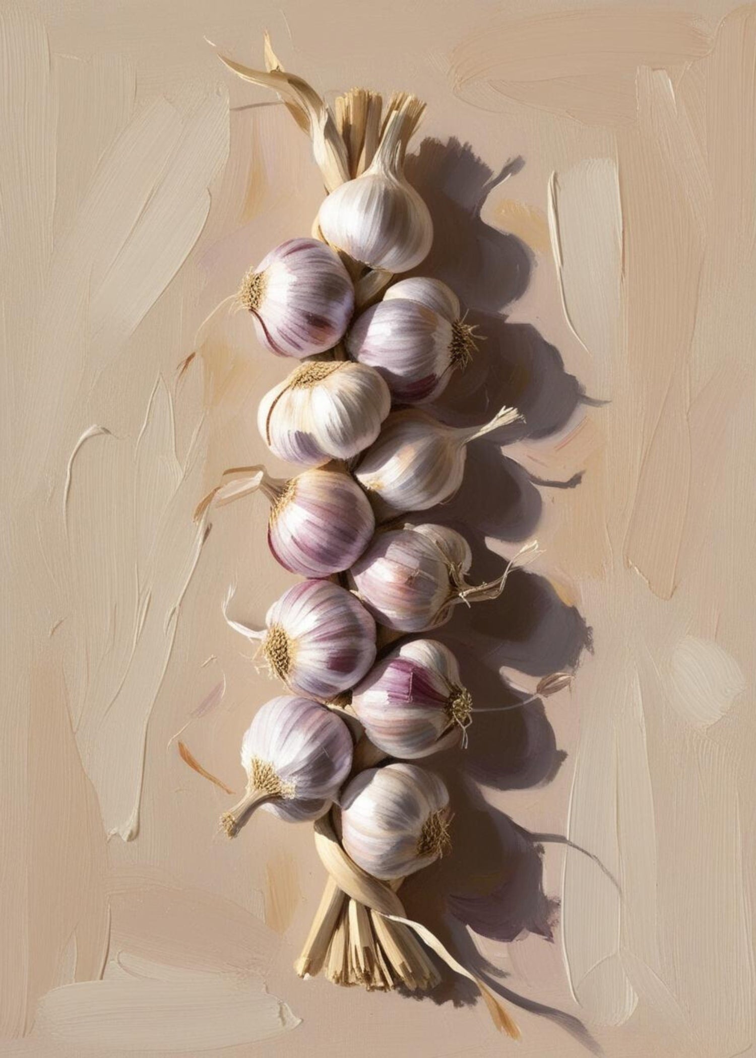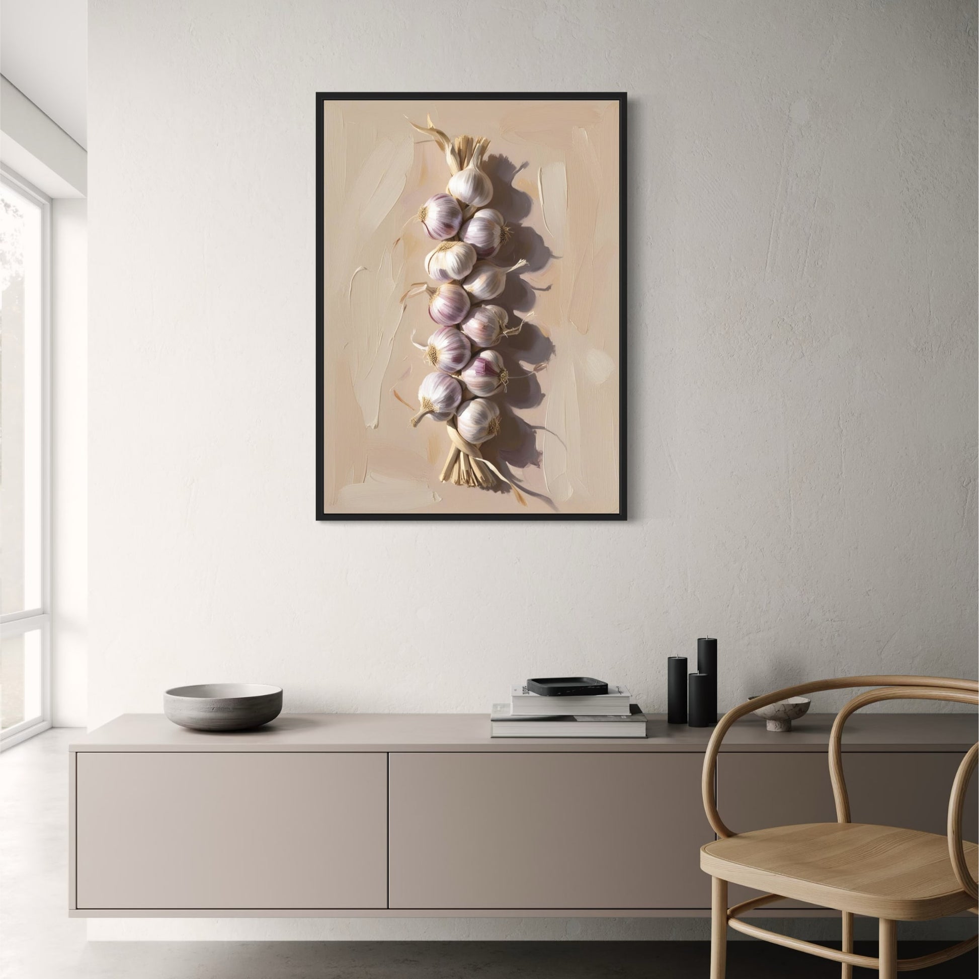 Garlic Braid Art Print | Vegetable Wall Decor | Rustic Kitchen Poster | Farmhouse Style Wall Art | Culinary Herb Decoration | Botanical Illustration